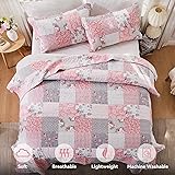 Pink Full Queen Size Quilt Set Floral Plaid Patchwork Rversible Quilted Bedspread Coverlet Set 3-Piece Grey Grid Flowers Lightweight Comforter Bedding Set Bed Sheet Cover Blanket with 2 Pillow Shams | Pink Grey Quilt Set, Queen Size Quilt Set, Queen Bedspread, Rversible Comforter, Floral Quilt Set, Lightweight Quilt