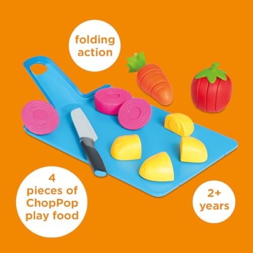 - CUTTING & CHOPPING: Our fun veggies are equipped with the famous ChopPop technology which allows kids to chop up the four different role-play foods into oh-so-satisfying slices without the use of velcro or magnets, adding a touch of realism to playtime