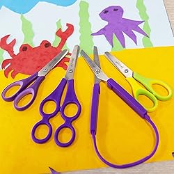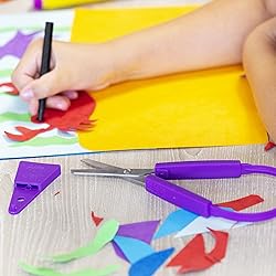 Twin pack of self-opening scissors from Ashton and Wright. Looped-grip design keeps blades in open position, making them easier to use for children and those with muscular weaknesses. Rounded safety blades, featuring a ruled edge marked in centimetres. Suitable for both left- and right-handed users. Comes with blade-guard for added protection. Suitable for ages 4 and above. Each pair measures: 197 x 85 x 15mm.