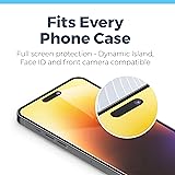 PROTECT YOUR NEW IPHONE 14 PRO - This 6.1-inch Apple iPhone screen protector is specially engineered for the iPhone 14 Pro, offering a precise fit that considers your phone's front camera, ALS and proximity sensors. COMPLETE SCREEN PROTECTION - The iPhone 14 Pro screen protector is designed with six layers of super-thin, shock-resistant glass to protect your phone from impact, shock, scratches and debris without affecting the HD display or touchscreen sensitivity. 30-SECOND, BUBBLE-FREE INSTALLATION - Our innovative Easy Install Tray guarantees you'll have a fast, accurate and bubble-free install. To apply, just peel the sticker off the pre-loaded applicator tray, line it up with your iPhone and press firmly. CASE FRIENDLY DESIGN - Our iPhone 14 Pro screen protector glass covers the entirety of your phone screen, leaving only a few millimeters around the perimeter to ensure compatibility with all phone cases. LIFETIME GUARANTEE - We believe in providing our customers with superior quality iPhone accessories for an affordable price, along with exceptional customer support. That's why we back all of our screen protectors with a no-hassle Lifetime Guarantee.