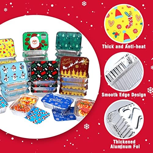 - SUPER VALUE PACK:Our Foil Containers with Lids includes 40 pieces of food containers,measuring Size: 7"x5"x2" in 8 Christmas Designs! UNIQUE DESIGN: 40 Christmas foil containers come with beautiful