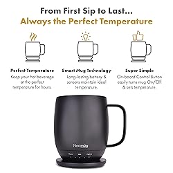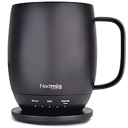 ALWAYS THE PERFECT TEMPERATURE – The Nextmug will keep your hot coffee, tea or preferred beverage at the perfect temperature wherever you are. Simply select Warm (130° F), Hot (140° F), or Piping (150° F) and enjoy for hours. SMART MUG TECHNOLOGY – Long-lasting battery maintains your ideal temperature. LED lights display battery life & real-time temperature. Includes Spill-Resistant Lid & Charging Coaster. SUPER SIMPLE – On-board Control Button easily turns mug On/Off & sets the temperature. Takes only seconds to set the mug to your perfect temperature. No app required - no passwords, re-booting or security concerns. THE PERFECT GIFT - Give the gift for him and the gift for her that is certain to delight. Perfect for everyone on your list…moms, dads, grandmas, grandpas, teachers, birthdays, graduations and more! NEXTMUG CARES - Nextmug cares about our communities and our customers. We care by donating Nextmugs to teachers and first responders . We’re also committed to sustainable packaging by using 100% recyclable materials with all our products. Our dedicated customer service agents are based in the USA and always ready to help. INNOVATION FROM THE USA - The Nextmug was designed and tested at our offices in Boulder, Colorado by a team with decades of experience making award-winning consumer products. WHAT'S INCLUDED – (1) 14 oz. Nextmug; (2) Docking Coaster & 6-foot cord to charge the lithium-ion battery inside the Nextmug; (3) Spill-Resistant Lid to keep hot liquids in the mug and help maintain the ideal temperature for longer periods of time. All Nextmugs are fully compatible, including mugs, lids, docking coasters and accessories.