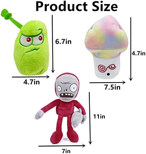 - Tamaño Hypno Shroom: 4.7*7.5 pulgadas, Tamaño Zombi Delfin: 7*11 pulgadas, Tamaño Laser Bean: 4.7*6.7 pulgadas.