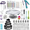 204 PCS Cake Decorating Supplies, Baking Supplies Kit Set with 4 Springform Pan Sets, 55 Icing Piping Nozzles, Aluminum Rotating Turntable Stand, Cake Topper, Icing Spatula, Scraper, Pro Baking Tools