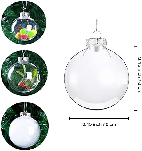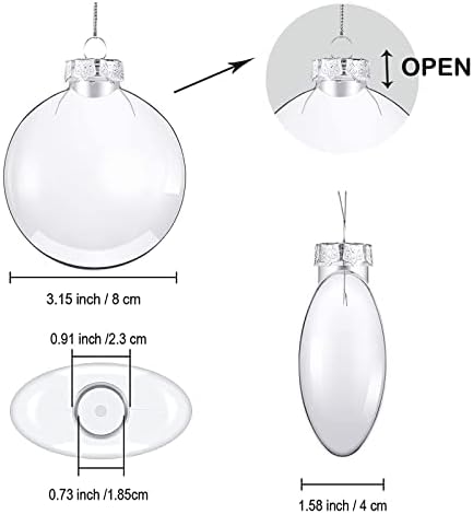- Christmas Ball Ornament Packaging: Christmas ornaments includes 12 clear balls with a diameter of 3.15 inches/80 mm. The opening is 0.7"/18mm wide, perfect for DIY decorations and festive decorations
