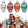 12pcs Day of The Dead Glass Ornaments - Dia De Los Muertos Sugar Skull Ornaments - Halloween Hanging Skeleton Head Ornament for Christmas Tree Hanging Decorations