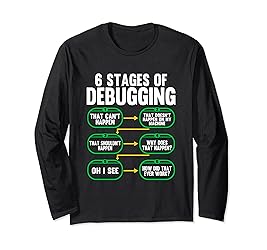 - 6 stages of debugging. Binary Code Gifts. You are a expert to programming and coding? Computer coding development and debugging is your job. This Software Development Coder Programmer 6 Stages Of Debugging is designed by Software Developer Programmer Gifts.