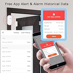 APP ALERTS ON YOUR PHONE: Wifi door sensor, "Tuya Smart" or "Smart Life" APP control. No hub required and No fees charge. When door/window is opened or closed, the sensor will push instant notification to your smartphone immediately. You can check your house on APP whatever where you are. DOOR ALARM COMPATIBLE WITH ALEXA,GOOGLE HOME: Smart door window alarm works with Alexa and Google Home. Support voice control by Google and Alexa. Alexa/Google is able to answer the question “Is the door open/closed?” WIRELESS MAGNETIC SENSOR--EASY INSTALLATION: Without tools, easily setup wifi window alarms for home in minutes, just use 3M glue to install, firm and durable.The two arrows are opposite,the distance between the two components should be as close as possible,and the closest distance should not affect the opening/closing of the door or window. LONG-LASTING PERFORMANCE & LOW POWER WARNING: Door open alert wireless door sensor powered by 2*AAA batteries(Included), working time can last for one year without to replace the battery. When the battery is running low, it will automatically push messages through APP to remind you to change battery, never worry about running out of battery. UNIVERSAL COMPATIBILITY & QUALITY GUARANTEE: Install the alarm sensor not only on front doors or windows, but also on garage doors, liquor cabinets, front gate, safety deposit box, pet doors and more. And we will offer you a replacement or refund if you have any problems with your door open alert wireless door sensor.
