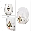 Stemless Christmas Tree Wine Glasses - Set of 2 - Christmas Cheer for Holiday Gift and Winter Season - 18 oz Stemless Decorated Tree Ornament Wine Tumblers for Holiday Season and Winter 4.7" H