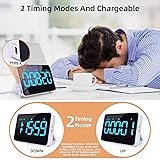 Rechargeable Counting Down/up Kitchen Timer--The large digital timer countdown from 9:59:59 to 0:00:00, or as a stopwatch from 0:00:00 to 9:59:59; The magnetic kitchen timers is rechargeable, timers come with the Typ-c charging cable. With this rechargeable digital timer, you no longer have to worry about changing batteries frequently. 5" LED Display with 3 Screen Modes--The timer with a large black screen and blue numbers is very friendly to the elderly and children to check the time easily.High/low light/power saving screen modes for you use during day and night. In power saving mode without press any key , the egg timer will automatically go from high light to shutdown after 10 seconds / it will automatically turn off after 5mins when it is not working ,just press the button on the screen to activate it again as needed. Kitchen Timer Digital with 4 levels of adjustable volume-- Loud (80-90dB)-a loud alarm is easy to hear even if you are not around; Soft (60-75dB) -children use a soft volume for better hearing protection; Vibrate/Silent-set to vibrate/silent during a meeting or library to remind yourself without disturbing others; the alarm/vibrate/flash will last for 1 minute unless you press any key to pause. 3 Ways to Place The Cooking timer --The digital kitchen timer for cooking with four strong magnets for a powerful suction and no slip, easily to stick it on any metal surface directly, or you could hang it anywhere by using the hook, it also with a stand for place on desktop.Ideal for kids, Seniors, housewives, cooking, homework, yoga, skin care, meeting, exercise, sports, games, classroom, office, library, lab. The Magnetic timer is Easy to Use --The countdown timer with regular and simple button settings, children and seniors can easily make it work too! Separate H, M and S button to set the exact time you need, the SP/ST button to start/stop, a CLEAR button is added to makes it much easier to reset. Press and hold H, M or S to quickly adjust to the time you want. When the countdown is up, press any button at the top to pause, and press the ST/SP button again to return to the last set time.