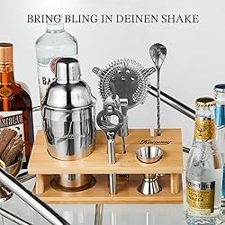 Add Master Mixologist to Your Resume: Curated by KITESSENSU with the cocktail enthusiast in mind, this 6-piece cocktail shaker set has everything mixology kit you need to make cocktails, whether you’re a bartender looking for quality drink mixer set, or a home mixologist to get started creating and serving drinks from your own entertainment space Made to Last: Upgraded 18/8 stainless steel bartender kit cocktail set is your best bet, which is specially thickened (0.8 mm) to protect itself from rust for lifetime and remain shiny and new after years of shaking, and it can withstand lots of rough and tumble, even being dropped, without letting you down. and the bar mixing set is safe in the dishwasher Raise The Atmosphere: The bartenders will benefit from a stand, allowing you to keep your bar kit set organized and also on full display, and you will find the contrast between wood and stainless steel makes a wonderful statement on the kitchen counter, but this is not a case of style over substance. with the right cocktail tools, you can easily bring the cocktail bar experience into your home Top-Notch Gift: This cocktail mixing set is the best gift everyone at the party will be talking about, it comes in a stylish, package for that special gift opening experience, and included a recipe guide, giving a plenty of inspiration to get started, even if never made a cocktail before. A thoughtful gift for friends, family, colleagues, clients, and business partners that proves your good taste Bartender's Choice: Whether you want to celebrate or unwind, be stimulated or relaxed, remember or forget. For all the reasons why we shake and enjoy our cocktails, with kitessensu martini shaker set creating and serving cocktails is as much fun as drinking them. Your order will be backed by a full 30-day money-back guarantee, don’t hesitate to reach out to our customer support if there is any issue you have