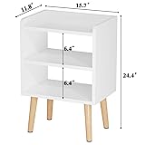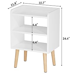 【Compact & Space-Saving Design】Dimensions: 15.7"L x 11.8"W x 24.4"H (40 x 30 x 62 cm). Perfect height to match beds, sofas, or chairs. Ideal for small spaces like apartments, kids’ rooms, or studio bedrooms. 【Solid Wood Construction & Anti-Wobble Design】Crafted from scratch-resistant wooden boards with 4 splayed solid wood legs for maximum stability (holds up to 100 lbs). Smooth surface and minimalist mid-century modern style elevate any room. 【3-Tier Open Storage & Versatile Use】2 open shelves + a wide tabletop to organize books, remotes, lamps, or plants. Use as a bedside table, living room end table, or nursery side table—fits all decor styles! 【Upgraded Safety & Convenience】Anti-slip foot pads protect floors and reduce noise. Open back design allows easy access to outlets. Raised tabletop edges prevent items from sliding off. 【Mid-Century Modern Meets Functionality】Blends seamlessly with farmhouse, boho, or contemporary decor. Perfect as a bedside table, office side table, or entryway accent piece. 【Easy to Assemble】The minimalist bedside table is very easy to assemble, all accessories and instruction are included, it will take you about 10 minutes to finish the set up easily.