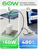- Carga rápida para todos los dispositivos USB C: Cable USB C a USB C (PD Max 60W) + Cargador tipo C (QC 3.1A) 2 en 1. Eso significa que puedes usarlo como cargador rápido para iPad para conectar todos los dispositivos USB C súper rápido (40% más rápido) en comparación con otros cables que proporcionan una salida de 5V/2.4A. Y velocidades de transferencia de datos de hasta 480Mbps. NOTA: Al cargar dispositivos MacBook/iPad pro/air, por favor usa el cable de carga rápida USB C a USB C