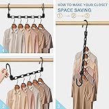 【Value Set】You will get 24 pcs closet hangers space saving in black color. Each space saver plastic hangers can hang 5 pieces of clothes vertically or horizontally, and a magic hangers set can hang up to 120 pieces of clothes. With this closet storage organizer, you no longer have to throw away your clothes to make more space! 【Newly Designed】Each magic hanger organizer has 5 enclosed holes slots to effectively prevent the clothes hangers from falling. The collapsible hangers hook can be rotated 360°freely, suitable for all kinds of closet rods and no assembly required, just hang the rotating hook on your closet rod convenient for you to hang clothes as you wish! Length 15.3in(39cm) * Width 2.2in(5.5cm). Hook opening 1.4in(3.5cm). Hole slot is 0.6in(1.5cm). Tips: Please pay attention to the size of the hooks to fit your closet. 【Space Saving Hangers】This multi-functional space saving hangers support horizontal or vertical use. When hung vertically, clothes hangers space saving can increase closet capacity by up to four times, saves 80% of the space of the wardrobe. When hanging horizontally, the closet space savers are excellent for drying or picking out clothes. Our hanging closet organizers and storage are great for hanging your coat, suit, jacket, sweater, shirt, pants, jeans, dress, purse, or accessories. 【Take Care Of Your Clothes】Space-saving hangers for clothes organizer are made of strong PP plastic. The thickened design makes the hangers load-bearing capacity stronger, not easy to break, which can hold heavy winter coats effectively. The multi hangers space saving closet hangers edges are smoothed and beveled for a smooth finish, protecting your hands and clothes from harm. 【College Dorm Room Essentials】Closet hangers space saver are the great choice for your apartment and rv essentials, bedroom organization, college dorm room and back to school supplies. The smart hanger pro is great for rooms, dormitories and apartments where small space storage is limited. Maximize your closet space! Folding hangers space saving hanger hooks space saver is home essential for students girls boys family!
