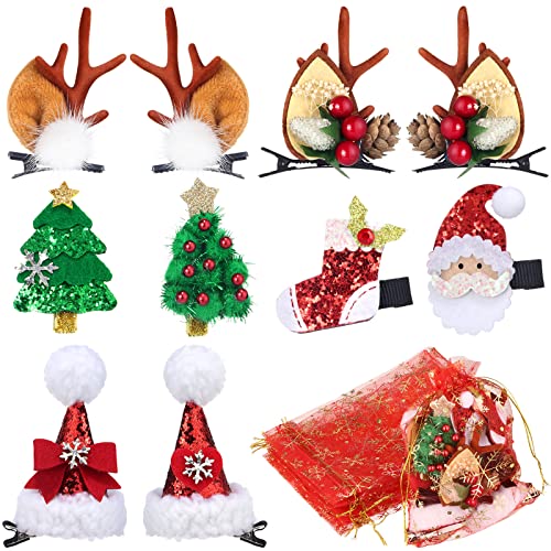 - What You Will Receive: you will receive 10 Christmas hairpins and 8 organza bags with snowflake drawstring; The hairpins include antlers, Christmas trees, Christmas hats and Christmas stockings; There are enough to meet your daily use and matching, and you can match them according to your own preferences or clothing styles
