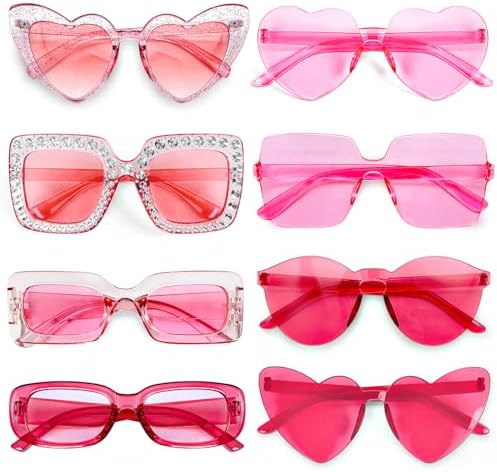 Pibupibu Pink Sunglasses for Women, 8 Pack Fun Transparent Pink Glasses Bulk Trendy Cute Costume Accessories Eyewear Set