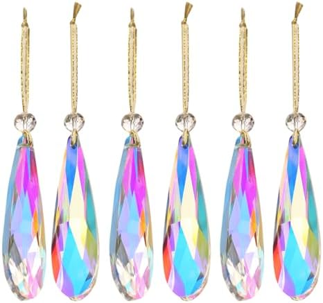 Crystal Glass Christmas Ornaments, 6Pcs Teardrop Prism Hanging Crystals for Christmas Tree,Centerpieces,Wedding,Party Decor (Crystal AB)