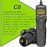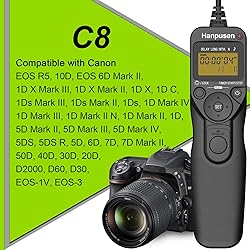 Timer Remote Shutter: this remote can be used to trigger your camera for Delay shooting/Self-timer, Bulb shooting/Long exposure timer, Interval timer, Exposure count control, supports electric sound speaker, shutter release active lamp Avoid Shaking for Long Exposure: this wired remote control help you to avoid vibration caused by pressing the camera shutter button for your shooting especially Bulb shooting Intervalometer Program: Time delay and Exposure time can be set from 0s to 99hrs 59min 59s in one-second increments, Interval can be set from 1s to 99hrs 59min 59s in one-second increments, Number of shots: 1 to 399,- -(unlimited) Great for long time Photos: the intervalometer function is useful for night sky photography, solar eclipse, macro or night sky shots, fireworks shoot, starry sky, wild photography, macro photography etc Replaces TC-80N3. Compatible with Canon EOS R5, EOS R3, EOS R5 C, 10D, EOS 6D Mark II, 1D X Mark III, 1D X Mark II, 1D X, 1D C, 1DS Mark III, 1DS Mark II, 1Ds, 1D Mark IV, 1D Mark III, 1D Mark II N, 1D Mark II, 1D, 5D Mark II, 5D Mark III, 5D Mark IV, 5DS, 5DS R, 5D, 6D, 7D, 7D Mark II, 50D, 40D, 30D, 20D, D2000, D60, D30, EOS-1V, EOS-3