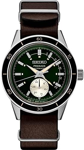 Reloj automático Seiko para hombre con esfera verde y banda de cuero marrón