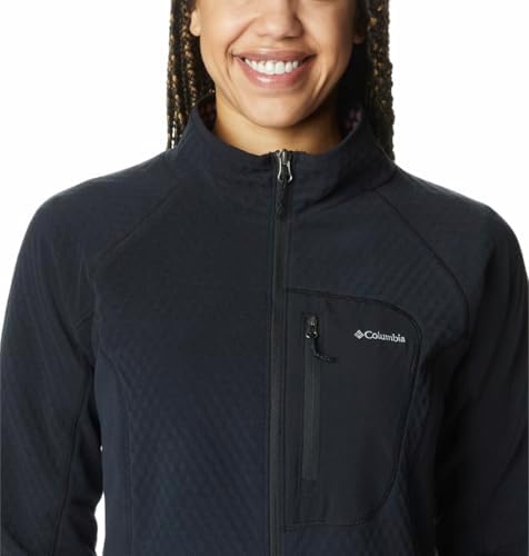 Camiseta de forro polar Columbia W Outdoor Tracks con cierre completo para mujer, detalles en gris, aislamiento innovador Las celdas aislantes de alto rendimiento gestionan el calor y el flujo de aire y te mantienen caliente, seca y cómoda. Para aventuras de alta actividad en climas fríos, esta camiseta de forro polar es cómoda de llevar. BOLSILLOS FUNCIONALES Los bolsillos con cremallera en el pecho y los bolsillos laterales mantienen tus cosas seguras. Celdas térmicas Omni-Heat Helix de alto rendimiento. Bolsillo en el pecho con cremallera Bolsillos laterales con cremallera