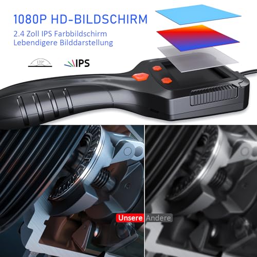 - 【ADOPT 2.4-INCH HD IPS SCREEN】 The endoscope camera with light adopts an 8mm micro camera, which can provide you with a horizontal viewing angle of 170°, Included 6 adjustable LED lamp beads enable the endoscope camera to provide you with absolutely realistic visual effects and high-definition pictures.
