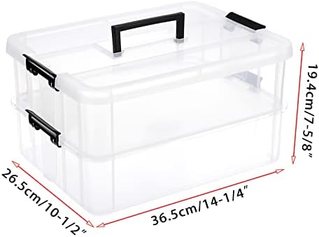 - 2 Stackable Tiers: This storage box features 2 stackable tiers of storage with 1 transparent lid, lock your supplies firmly for safe storage and transportation, and see-through latched layers allow easy access to items enclosed.Kindly Note: 2 Stackable Tiers storage box with only 1 lid.
