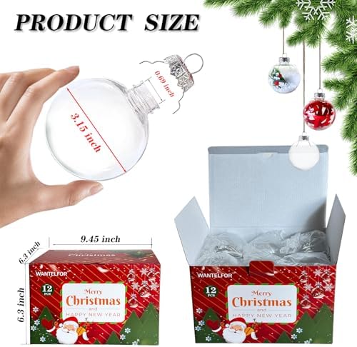 - 【PACKAGING INCLUDE】Including 12pcs 3.15 inch clear plastic fillable ornament balls,12pcs*19.7inch silver wire and customized Christmas gift box