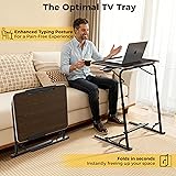 【Say Goodbye to Discomfort】- Sturdy foldable laptop table with 15 Custom Heights & Angles Combination, easing neck & back strain. Optimal size (30”x23.6”x17.7”) for focused work, comfortable study sessions, or relaxed dining. Designed to fold flat for effortless portability and space-saving convenience. 【Optimal Design & Features!】- Sofa desk with Built-in Cupholder, iPad Holder, and a Posture-Improving Footrest that reduces leg pressure and bumps that simulate a massage. This TV dinner tray table supports 5 heights from 22” to 30” and 3 angles with a removable edge stopper to keep items secure. 【Premium Materials that Last】- Portable table built with durable engineered wood and a reinforced steel frame, holds 55 lbs with ease and no wobble. This adjustable tray table features a smooth protected tabletop ‘U’ edge and Tool-Free Assembly, or folding, ready in seconds! 【Universal Comfort】- Perfect for long working hours, studying, dining, or relaxing with reading, streaming, or hobbies, all in comfort and style. Adaptive design suits all ages, from the young to the elderly, and works seamlessly with beds, couches, or chairs. Serves as a chair table, sofa desk, or TV tables for eating. 【Foldable & Compact Design】- Folds flat in seconds for quick setup or storage. Foldable table designed to fit under your bed, sofa, or lean against a wall. Whether used as a computer table for couch or a compact workstation, its folding tray table design maximizes functionality while saving your valuable space!