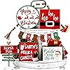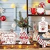 Bucherry 12 Pieces Christmas Candy Cane Tiered Tray Decor Red White Winter Farmhouse Christmas Wooden Signs Decoration for Home Room Table Fireplace