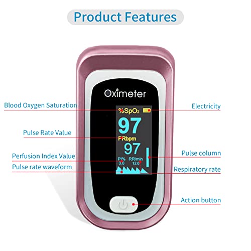 Pulse Oximeter Fingertip,Blood Oxygen Saturation Monitor,Spo2 Pulse Oxygen Saturation Pulse Monitor OLED Screen PI and Respiratory Rate (RR) monitoring, rose gold,