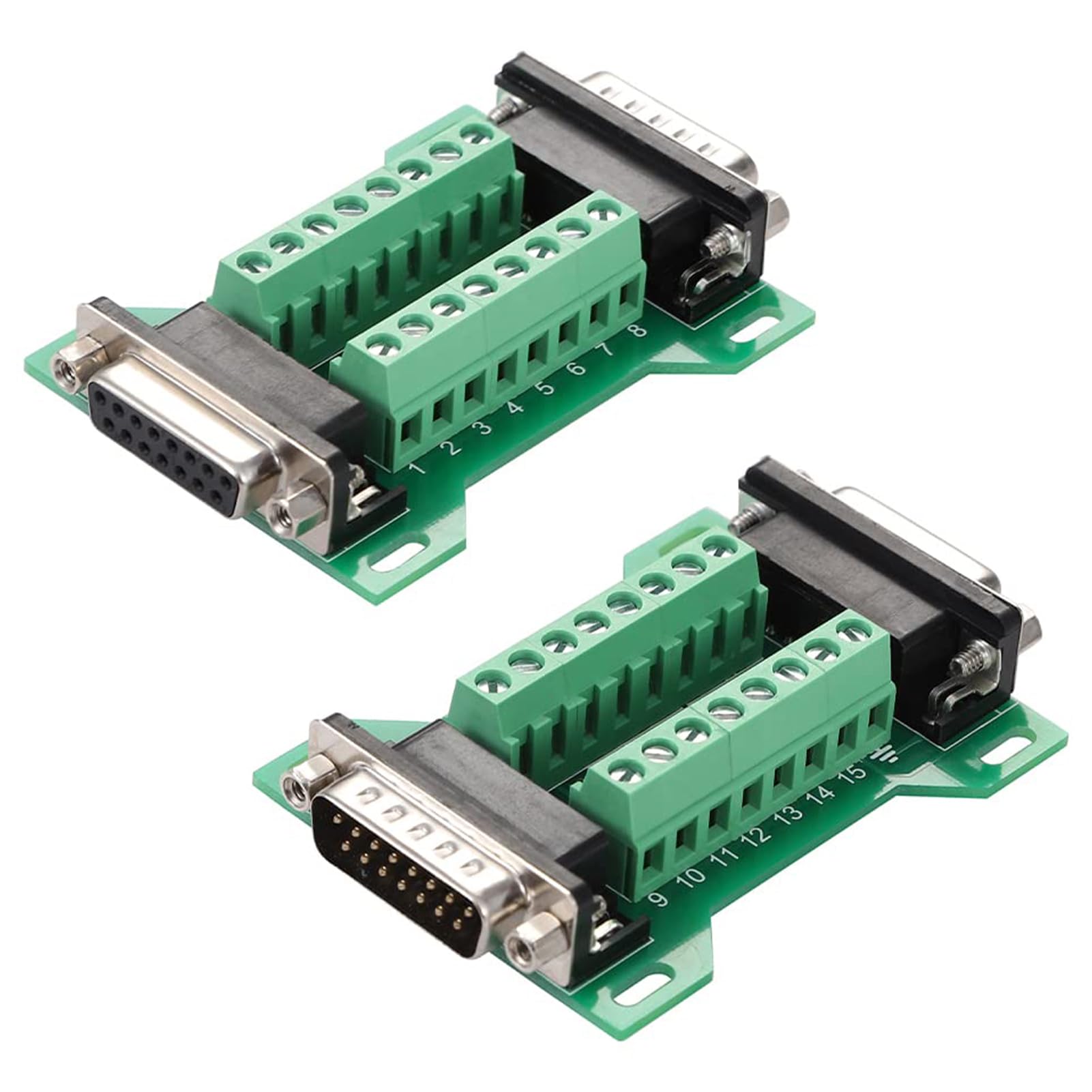 DB15 Solderless Breakout Connector with 5Ft 24AWG Replacement Cable, Metal Shell RS232 D-SUB Serial to 15-Pin Port Terminal Female Adapter Connector Breakout Board