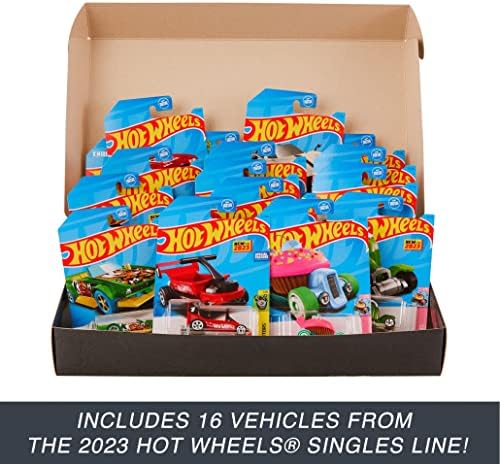 - Cada caja opaca incluye 16 coches de juguete Hot Wheels, cada uno en su original empaquetado de blister, haciendo su primera aparición en la línea 2023 Hot Wheels Singles. Guárdalos como un set o repártelos como sorpresas.