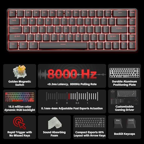 - Lightning-Fast Rapid Trigger: Magnetic switches with 0.1-4.0mm adjustable actuation deliver 300% faster input than traditional keyboards. Experience ultra-responsive gameplay with under 0.3ms latency.