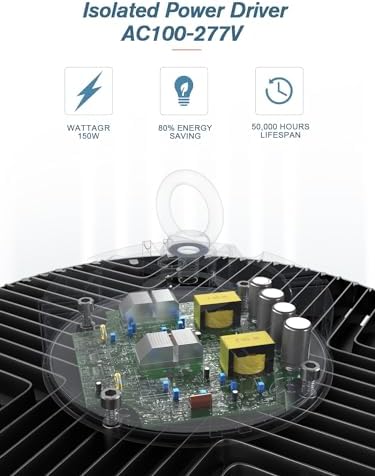 - High Brightness-This ELEKICO ufo led high bay light 150 watt, features high-quality SMD2835 LED chips. With Light efficiency up to 150LM/W, it outputs an incredible 21000LM.