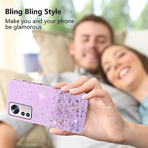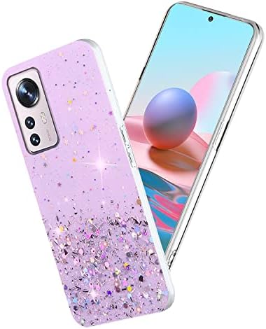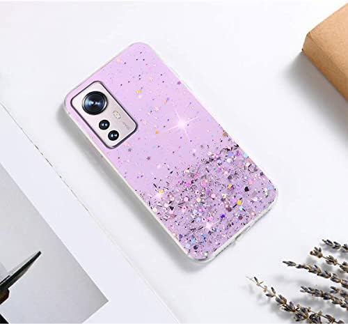 Phone Case for Xiaomi 12 Lite, Glitter Bling Design for Xiaomi 12 Lite Case Clear Silione Soft Aesthetic Slim Cover Pink Cute for Women & Girls (Purple)