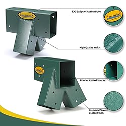 - Save big when you purchase 3 of Eastern Jungle Gym's top selling Easy 1-2-3 A-Frame Swing Set Brackets! The Easy 1-2-3 Bracket makes building a swing set easier than ever! Let us take the guess work out of your DIY swing set with our new Bracket Kit! Kit includes 2 Brackets & 2 sets of Bracket Hardware; everything you need to build your A-Frame Swing Set! Our A-Frame Brackets are the #1 swing set brackets on the market. Made with heavy-duty steel they feature a solid, one piece design with welded seems for the strongest and safest construction - each bracket weighs 10 pounds! Every bracket is finished in a powder-coated green color & our signature yellow tag. The bracket is open-ended with 14 pre-drilled holes for the included bracket hardware. Simply slide your wood into the bracket & screw the included lag bolts into the pre-drilled holes, it's that easy! No measuring or cutting necessary. Our brackets are designed to fit a kiln-dried 4x6 top beam with a true measurement of 3-1/2" x 5-1/2", & four 4x4 side support legs with true measurements of 3-1/2" x 3-1/2". The bracket openings measure 3-5/8" x 5-5/8" & 3-5/8" x 3-5/8". Please do not attempt to force the wood into the bracket. The wood should slide into the bracket easily with a snug fit. If your boards are too large we recommend the wood be planed down to produce a comfortable fit. As a manufacturer of swing sets for over 30 years, you can count on us for the highest quality products and customer service. Have a question about install? Contact us! As experts in swing sets, we can help! Don't forget to look for the YELLOW TAG to ensure you are purchasing a genuine EJG bracket. The yellow tag ensures a 100% authentic Eastern Jungle Gym product & our warranty. We warrant all brackets will be free from defects in material & workmanship for 1 year from the purchase date. Have an issue? Let us know! We want you to be 100% satisfied with your purchase!