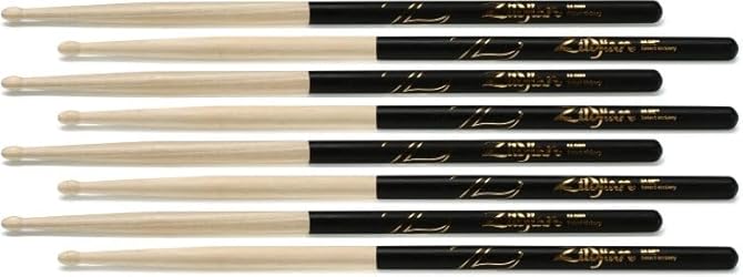 - Grip with Confidence and Comfort The ever-popular Zildjian 5A hickory DIP series drumsticks are now available in a fantastic value pack that gives you four pairs for the price of three! With a classic, comfortable 0.560-inch diameter and 16-inch length combination, these hickory sticks offer a universally commanding and well-balanced feel in hand — it's no wonder they're such a preferred choice! Armed with a special coating on the handle half of each stick, the DIP series offers exceptional playing comfort and a subtly tacky grip that affords every player the grip confidence to keep their main focus on the music. Also, the oval tip shape is perfect for boosting the fullness of your tone, ensuring a stature-full sound onstage. Sweetwater drummers across all genres continuously enjoy the playability benefits of the DIP series from Zildjian!Zildjian DIP Drumsticks Features: Strong and classic hickory stick construction 0.560-in. diameter and 16-in. length