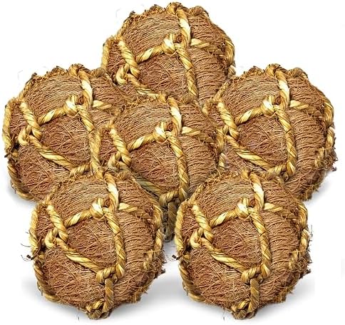 SunGrow Assorted Rabbit & Cat Chew Balls, Teething Activity Toy for Pocket Pets, Improves Dental Health, Environment Friendly, Stress Reliever (Coco Fiber, 6 Pcs)