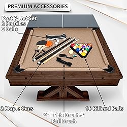 Freetime Fun 7 FT 3 in 1 Multi Game Pool Table with Dining Top Pool Table Ping Pong Table Combo, Includes Accessories and Tennis Paddles.