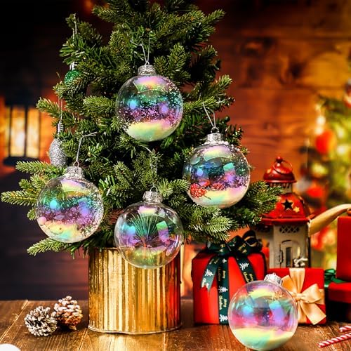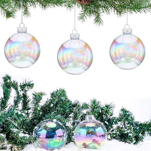 - Durable and Reusable: this plastic iridescent ornament balls are made of flexible PVC that can withstand accidental drops without breaking; Lightweight and sturdy, non-toxic and odorless, no need to worry about injuries like glass Christmas ornaments; Wipe the clear christmas ornaments balls clean with a damp cloth and can be used again and again in different seasons