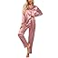 Ekouaer Women's Classic Button Down Long Satin Silk Pajama Set