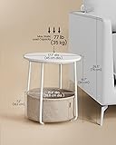 VASAGLE LILEA Collection - Small Round Side End Table, Modern Nightstand with Fabric Basket, Matte White and Camel Brown ULET223W10