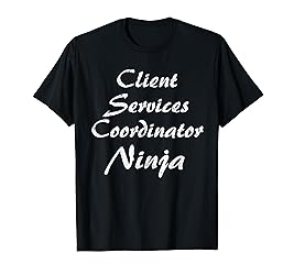 - Novelty Tee Shirt For Someone Co Worker Who Loves Client Services Coordinator Unique Birthday Christmas Xmas Present For Husband Wife Mom Dad Colleague Coworker Unique Funny Novelty Client Services Coordinator Ninja Funny Job Work Title Clothing Apparel Fathers Mothers Day Clothes