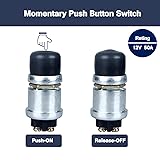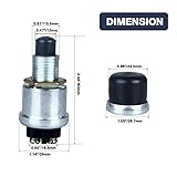 Feature:SPST Momentary Push Starter Switch with Black Dust Coverfor extra protection against Dust and Moisture. Voltage: 12V/24V Current: 50A Size: The height of the starter switch is 2.44 inch(without cover), requires a 5/8" hole for mounting (No Wires Are Included). Function:Switch only remains active (ON) as long as it is depressed. If the switch is not being depressed, it remains in the "OFF" state. Waterproof, Weatherproof & Dustproof: the cover of the button enables the push button starter switch to be used in extreme environment, it is widely used as the horn, ignition and start switch for truck, car, rv, atv, utv, marine, boat, lawn tractor, etc.
