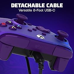 - Ready for a rematch? Take your enemies down again and again with the enhanced features and customizability of the Purple Fade REMATCH Advanced Wired Controller, officially licensed by Xbox. Rethink the way you game using the two programmable back buttons to map controller functions and take down ops quickly and efficiently. Enjoy improved accuracy with the textured grips, thumbsticks, and triggers. With the built-in volume controls on the D-pad and quick mic mute, you can make rapid-fire adjustments without ruining your immersion. Enhance your gaming experience further by customizing your controller on the free PDP Control Hub app. Re-map buttons, reconfigure triggers, adjust deadzones, update controller firmware, and more. Connect the included 8-foot USB-C cable to upgrade your gaming with the officially licensed REMATCH Advanced Wired Controller.