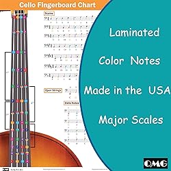 CELLO FINGERING CHART: Memorizing the notes on the fretboard can be daunting at first. Learn Cello technique and master the Cello with this fingering chart for all levels. COLOR-CODED NOTES: This Cello fingering chart features color-coded notes to help beginners remember the finger positions. The easy-to-follow design makes this Cello fingering chart convenient, especially for visual learners. LONG-LASTING MATERIALS: We laminated this Cello fingering chart so that it will last you longer even after constant use. With a slightly oversized yet still portable design, this chart measures 11x17-inches. LEARN CELLO SCALES: Seven Major scales are also included in the chart. This fingering chart is a wonderful resource for beginner Cello players as well as those who want a quick review. MADE IN THE USA: At QMG, we want to ensure that this instrument chart will support your efforts to learn the Cello as well as last for years. We design and create our charts in the USA to make certain that you get the highest quality product.