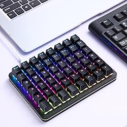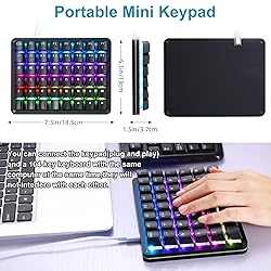 Koolertron One Handed Mechanical Gaming Keyboard, 48-Key Fully Programmable Mini Keypad, Mini USB Macro Keyboard with RGB LED Backlit, for Windows PC Gamer