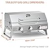 Tabletop Gas Grill 3 Burners, Portable Propane BBQ Grill with Foldable Legs for Outdoor Barbecue Patio Backyard Camping, Tailgating, RV Trip, Heavy Duty & 24000BTU, GS307