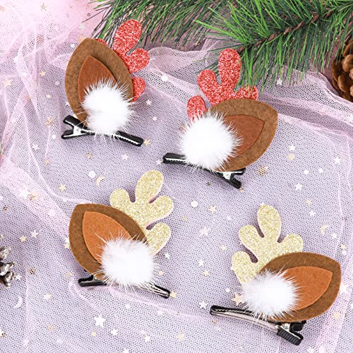 4PCS Christmas Hair Clip, Cute Xmas Reindeer Antler Hairpin Girl Women Hair Clips Xmas Hair Barrettes with Pom Balls Deer Ear Hair Accessories Festive Party Cosplay Gifts