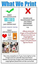 This is a 100% cotton (solids) or blends (heathers) T-Shirt, Proudly Printed in USA! It is Pre-shrunk and has a true to size unisex comfortable fit for men and women. Comfortable, not too thick but not too thin either All adult sizes are available in the following sizes (S, M, L, XL, 2X, 3X, 4X, 5X) Your custom artwork is digitally printed with best in class Kornit DTG printers. Due to varying computer monitor color calibrations, colors may vary slightly from photos